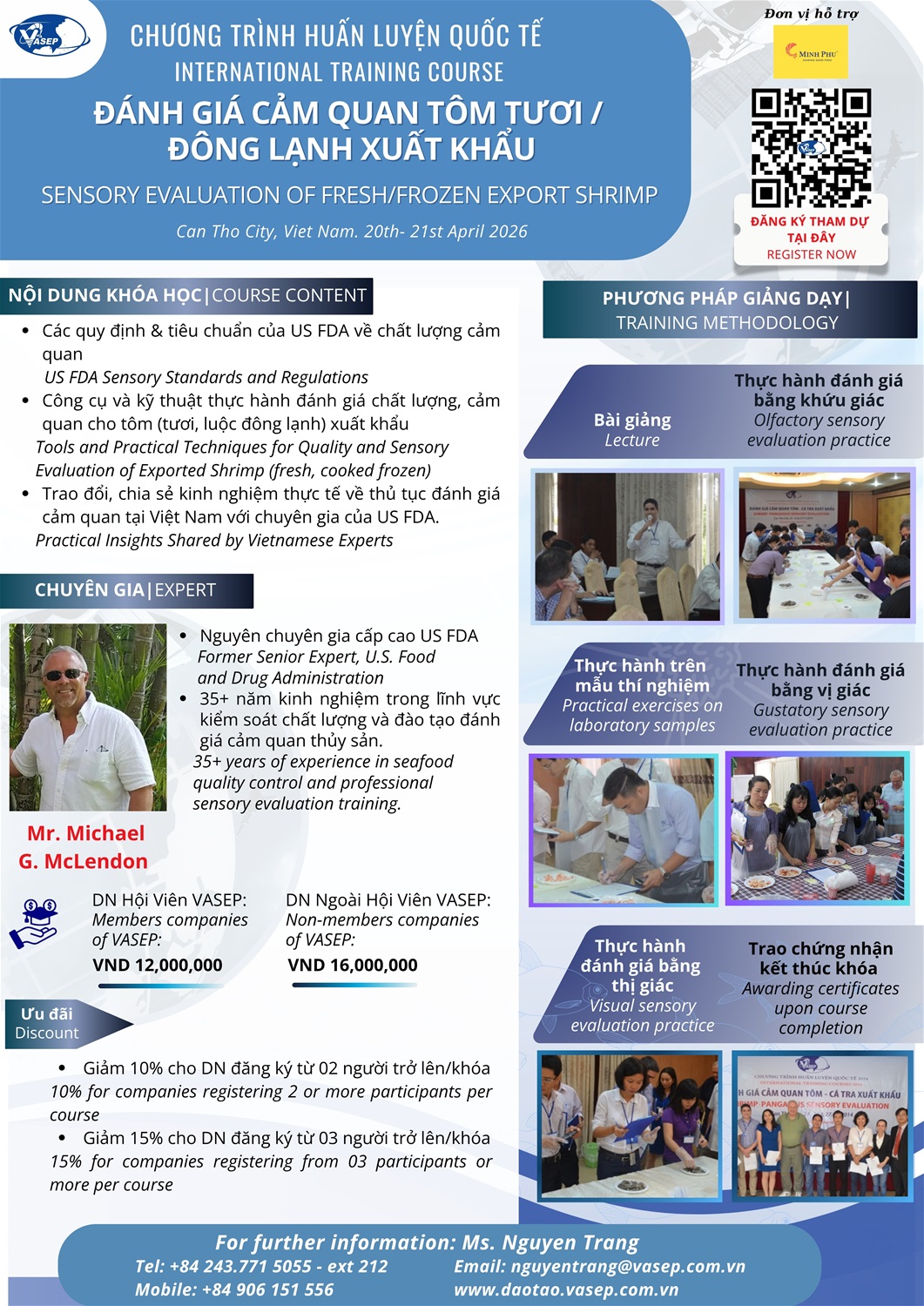 Hội viên VASEP: 12.000.000đ/người/khóa; Ngoài hội viên: 16.000.000đ/người/khóa
